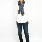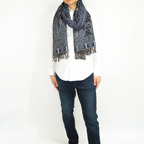 縦の長さが220cm、横幅105cmの特大ショールサイズで、ゆるっと巻くだけで立体的でボリューム感のある表情を作り出せます。広げて羽織れば上半身をすっぽりと覆うことができるのでトップスを気にせず合わせることができます。秋冬のアウター代わりにはもちろん、真夏の室内での冷房対策や膝掛けとしても使いやすくなっています。