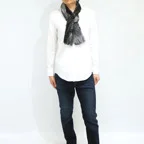 生地感よりカジュアルな普段使いにも、少しフォーマルなシーンでも使いやすいタイプです。スタイルや場所を問わず合わせることができる優れたストールです。