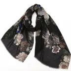 花柄が立体的に浮かぶ、贅沢なウールカシミヤシルクストール。上品さと落ち着き感が同居したバランス感覚が絶妙な一枚です。