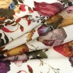 ウールとカシミヤ、シルクを混紡し、丁寧に織り上げた生地。非常にやわらかくしなやかな風合いに仕上がっています。