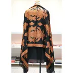 全面に施されたアーリ刺繍は誰もが振り返るほどの美しさ。ひとたび羽織ればパッと華やかにゴージャスな雰囲気に変わります。上半身を覆えるので、着ている服を気にせず合わせることができます。