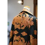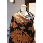 生地の厚みと刺繍の重量感も手伝って、すとんと流れるような落ち感が絶妙です。纏うだけで、まるで何かに守られているかのような安心感を得ることができます。