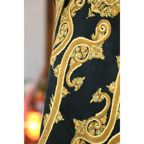 全面に施されたアーリ刺繍は誰もが振り返るほどの美しさ。ひとたび羽織ればパッと華やかにゴージャスな雰囲気に変わります。上半身を覆えるので、着ている服を気にせず合わせることができます。