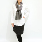 バランスの良い大判サイズで、巻きでも羽織でもどちらも使いやすいストールです。特に羽織は全面に施された刺繍が美しく輝き、サッとあしらうだけで全体の印象を大きく変えてくれます。
