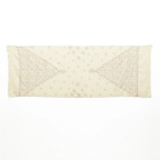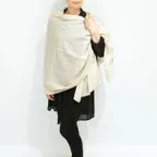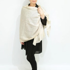 このカシミヤストールには最も繊細なインドカシミール地方ラダック産カシミヤ糸(パシュミナ)が使われています。そのため手織りカシミアストールの中でも最も目が細く繊細な生地となっています。薄くて軽くてやわらかい最上級の一枚です。