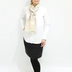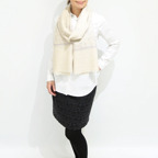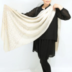 バランスの良い大判サイズで、巻きでも羽織でもどちらも使いやすいストールです。特に羽織は全面に施された刺繍が美しく輝き、サッとあしらうだけで全体の印象を大きく変えてくれます。