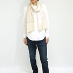 バランスの良い大判サイズで、巻きでも羽織でもどちらも使いやすいストールです。特に羽織は全面に施された刺繍が美しく輝き、サッとあしらうだけで全体の印象を大きく変えてくれます。