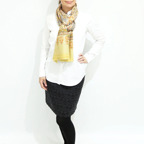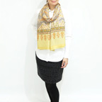 スタンダードな大判サイズで、巻きでも羽織でもどちらも使いやすいストールです。特に羽織は全面に施された刺繍が美しく輝き、サッとあしらうだけでエレガントな雰囲気に変化します。