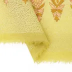 筆(カラム)を用いた模様は染色にはない繊細な色合いを生み出し、唯一無二のデザインに仕上がっています。さらにこの生地に熟練された職人がアーリ手刺繍を施しています。刺繍糸は全てシルク100%素材。色とりどりの刺繍糸を用いて表現された生地は美しい輝きを放ち、凹凸のない滑らかな質感を実現します。こうした完成した手仕事のショールはまさに芸術品。遠目にも伝わる高級感はあなたの装いに洗練された気品を与えてくれます。