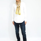 スタンダードな大判サイズで、巻きでも羽織でもどちらも使いやすいストールです。特に羽織は全面に施された刺繍が美しく輝き、サッとあしらうだけでエレガントな雰囲気に変化します。