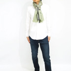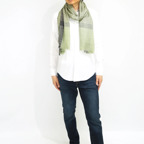 生地感よりカジュアルな普段使いにも、少しフォーマルなシーンでも使いやすいタイプです。スタイルや場所を問わず合わせることができる優れたストールです。