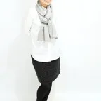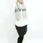 生地感よりカジュアルな普段使いにも、少しフォーマルなシーンでも使いやすいタイプです。スタイルや場所を問わず合わせることができる優れたストールです。