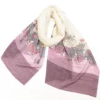 全面に施されたアーリ刺繍が美しく、品の良い女性らしい装いを叶えてくれます。カジュアルな普段使いはもちろん、フォーマルなシーンにも使いやすく、さらに和装とも相性が非常に良くなっています。スタイルや場所を問わず合わせることができる優れたストールです。