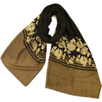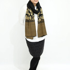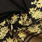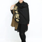 全面に施されたアーリ刺繍が美しく、品の良い女性らしい装いを叶えてくれます。カジュアルな普段使いはもちろん、フォーマルなシーンにも使いやすく、さらに和装とも相性が非常に良くなっています。スタイルや場所を問わず合わせることができる優れたストールです。