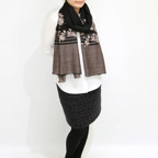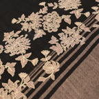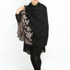 全面に施されたアーリ刺繍が美しく、品の良い女性らしい装いを叶えてくれます。カジュアルな普段使いはもちろん、フォーマルなシーンにも使いやすく、さらに和装とも相性が非常に良くなっています。スタイルや場所を問わず合わせることができる優れたストールです。