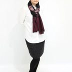 全面に施されたアーリ刺繍が美しく、品の良い女性らしい装いを叶えてくれます。カジュアルな普段使いはもちろん、フォーマルなシーンにも使いやすく、さらに和装とも相性が非常に良くなっています。スタイルや場所を問わず合わせることができる優れたストールです。