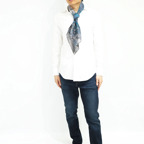 88cm×88cmの大判スカーフで、首元のアクセントに最適。アスコットタイのようにシャツやブラウスの中におさめて使うこともできますし、対角で畳んで肩から羽織ることもできます。また、身につけるだけでなく、手持ちのバッグにキュッと結べるアクセサリーとしても重宝します。