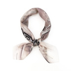 88cm×88cmの大判スカーフで、首元のアクセントに最適。アスコットタイのようにシャツやブラウスの中におさめて使うこともできますし、対角で畳んで肩から羽織ることもできます。また、身につけるだけでなく、手持ちのバッグにキュッと結べるアクセサリーとしても重宝します。