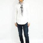 88cm×88cmの大判スカーフで、首元のアクセントに最適。アスコットタイのようにシャツやブラウスの中におさめて使うこともできますし、対角で畳んで肩から羽織ることもできます。また、身につけるだけでなく、手持ちのバッグにキュッと結べるアクセサリーとしても重宝します。