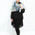 モダンな街並みの描いたおしゃれなスカーフ。88cm×88cmで首元のアクセントはもちろん、様々な巻き方をお楽しみいただけます♪