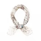 88cm×88cmの大判スカーフで、首元のアクセントに最適。アスコットタイのようにシャツやブラウスの中におさめて使うこともできますし、対角で畳んで肩から羽織ることもできます。また、身につけるだけでなく、手持ちのバッグにキュッと結べるアクセサリーとしても重宝します。