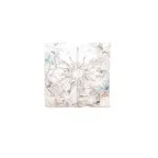 アーティスティックな正方形スカーフ。優しいトーンの多色使いで見た目以上に色々なお洋服に合わせやすくなっています。