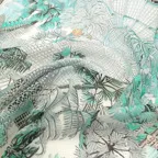 記憶に深く刻まれる、アートなスカーフ。風が優しく通り抜け、太陽に美しく透ける、そんな自然と仲良くなれる素材で仕上げました。
