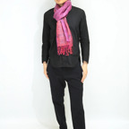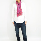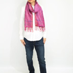 スタンダートな大判サイズで巻いても羽織っても、どちらも使いやすいタイプです。特に羽織は全体の印象がパッと華やかに、エレガントな雰囲気に変化します。