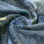 スタンダードな大判サイズで、首に巻くことはもちろん、室内でのひざ掛けにも、肩から羽織る使い方もできます。特に羽織りは、パッと華やかにエレガントな雰囲気に変わります。上半身を覆えるので、着ている服を気にせず合わせることができます。忙しい朝もコーディネートを気にする必要はありません。