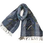 スタンダードな大判サイズで、首に巻くことはもちろん、室内でのひざ掛けにも、肩から羽織る使い方もできます。特に羽織りは、パッと華やかにエレガントな雰囲気に変わります。上半身を覆えるので、着ている服を気にせず合わせることができます。忙しい朝もコーディネートを気にする必要はありません。