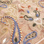 全面に施された刺繍は職人がハンドミシンで丁寧に製作しています。立体感のある刺繍が美しく、装いのアクセントに最適です。
