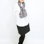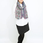 異なる色柄を組み合わせた独創的な一枚。ゆるっと巻くだけでアクセント効果が高くなっています。