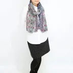 生地感よりカジュアルな普段使いにも、少しフォーマルなシーンでも使いやすいタイプです。スタイルや場所を問わず合わせることができる優れたストールです。