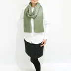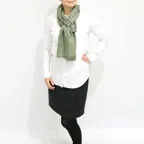 200cm×70cm大判サイズで、巻きでも羽織でもどちらも使いやすいストールです。上半身をすっぽりと覆うことができるため、トップスを気にせず合わせることができます。