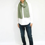 200cm×70cm大判サイズで、巻きでも羽織でもどちらも使いやすいストールです。上半身をすっぽりと覆うことができるため、トップスを気にせず合わせることができます。