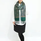 スタンダートな大判サイズで巻いても羽織っても、どちらも使いやすいタイプです。特に羽織は全体の印象が大きく変わります。