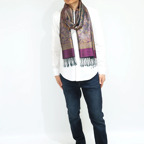 スタンダートな大判サイズで巻いても羽織っても、どちらも使いやすいタイプです。特に羽織は全体の印象が大きく変わります。