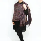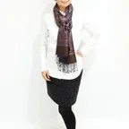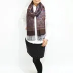 スタンダートな大判サイズで巻いても羽織っても、どちらも使いやすいタイプです。特に羽織は全体の印象が大きく変わります。