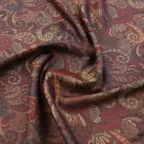 糸そのものの美しい光沢感とジャカード織機で製作された独創的なデザインが相まった他にはないシルクストールに仕上がっています。