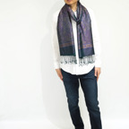 糸そのものの美しい光沢感とジャカード織機で製作された独創的なデザインが相まった他にはないシルクストールに仕上がっています。
