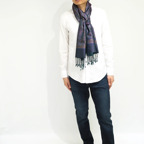 スタンダートな大判サイズで巻いても羽織っても、どちらも使いやすいタイプです。特に羽織は全体の印象が大きく変わります。