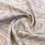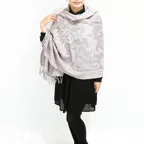 スタンダードな大判サイズで、首に巻くことはもちろん、室内でのひざ掛けにも、肩から羽織る使い方もできます。特に羽織りは、パッと華やかにエレガントな雰囲気に変わります。上半身を覆えるので、着ている服を気にせず合わせることができます。忙しい朝もコーディネートを気にする必要はありません。