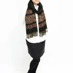 スタンダードな大判サイズで、首に巻くことはもちろん、室内でのひざ掛けにも、肩から羽織る使い方もできます。特に羽織りは、パッと華やかにエレガントな雰囲気に変わります。上半身を覆えるので、着ている服を気にせず合わせることができます。忙しい朝もコーディネートを気にする必要はありません。