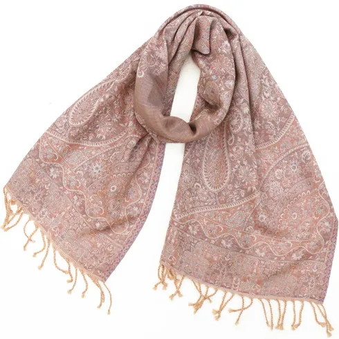 スタンダードな大判サイズで、首に巻くことはもちろん、室内でのひざ掛けにも、肩から羽織る使い方もできます。特に羽織りは、パッと華やかにエレガントな雰囲気に変わります。上半身を覆えるので、着ている服を気にせず合わせることができます。忙しい朝もコーディネートを気にする必要はありません。