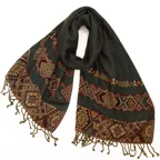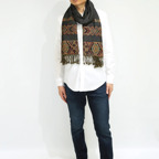 スタンダードな大判サイズで、首に巻くことはもちろん、室内でのひざ掛けにも、肩から羽織る使い方もできます。特に羽織りは、パッと華やかにエレガントな雰囲気に変わります。上半身を覆えるので、着ている服を気にせず合わせることができます。忙しい朝もコーディネートを気にする必要はありません。