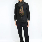 裏表で表情が大きく変わるリバーシブルデザインに仕上がっています。巻き方によっても印象を変えることができます。