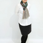 生地感よりカジュアルな普段使いにも、少しフォーマルなシーンでも使いやすいタイプです。スタイルや場所を問わず合わせることができる優れたストールです。