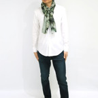 生地感よりカジュアルな普段使いにも、少しフォーマルなシーンでも使いやすいタイプです。スタイルや場所を問わず合わせることができる優れたストールです。