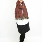 スタンダードな大判サイズの保温性の高いウールストール。落ち着いた色使いで合わせやすい一枚です。
