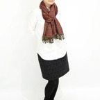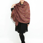 スタンダードな大判サイズで、首に巻くことはもちろん、室内でのひざ掛けにも、肩から羽織る使い方もできます。特に羽織りは、パッと華やかにエレガントな雰囲気に変わります。上半身を覆えるので、着ている服を気にせず合わせることができます。忙しい朝もコーディネートを気にする必要はありません。
